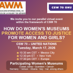 PRESENTATION The International Association of Women’s Museums (IAWM) held its first bilingual webinar on March 18th, 2026, bringing together 16 participants and members from across the globe. This virtual meeting was organized within the framework of the 70th session of the United Nations’ Commission on the Status of Women (CSW) in New York.